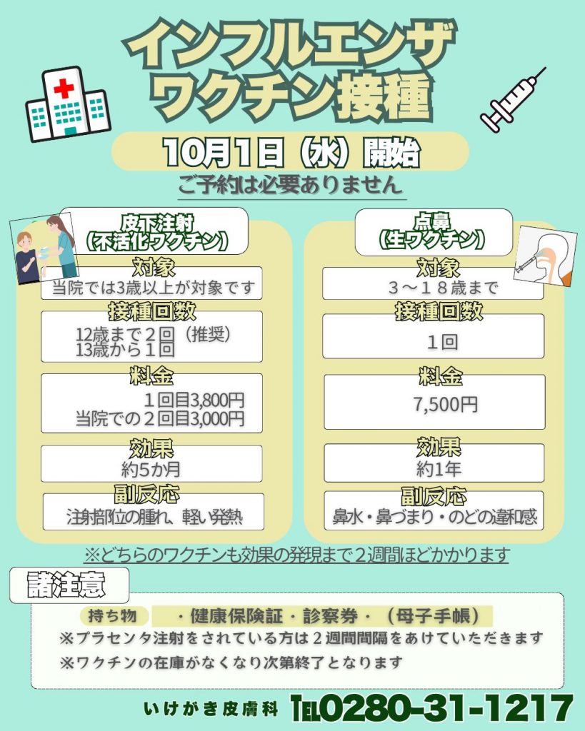 2025年のインフルエンザ予防接種は10月1日㈬から開始