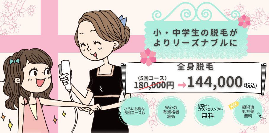当院では、小学生、中学生のお子様の脱毛(キッズ脱毛)を行っております。