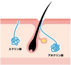 ワキの皮膚には主に2種類の汗腺があります。