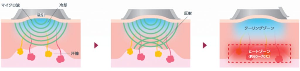 1. アポクリン腺とエクリン腺が集中する層へマイクロ波を照射します