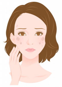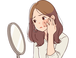 30代以降になると、女性ホルモンの変化や月経前の黄体ホルモン優位の時期に、皮脂分泌が増えることがあります。それによって、あごやフェイスラインにニキビが出やすくなるのです。