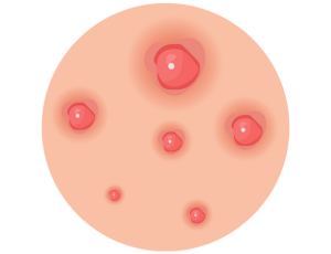 2つ目は、炎症の強さに対して、市販薬ではパワー不足な。ことが多いという点です。赤く腫れていたり、押すと痛みがあるようなニキビは、皮膚の中でアクネ菌が増殖し、炎症がかなり進んでいる状態です。このような“赤ニキビ”や“膿ニキビ”は、軽い市販薬の力では追いつきません
