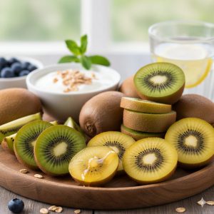 また、キウイには食物繊維も豊富に含まれていて、腸内環境を整える働きもあります。腸の調子が整うと、肌のターンオーバーがスムーズになり、ニキビや吹き出物の予防にもつながります。つまり「美肌と腸活」を同時にかなえてくれる果物なんです。グリーンキウイは食物繊維が多く、便秘気味の方に特におすすめ。ゴールドキウイは酸味が少なく甘みが強いので、フルーツが苦手な方でも食べやすいと思います。ビタミンCは体内にためておけない栄養素なので、毎日少しずつとるのが理想です。